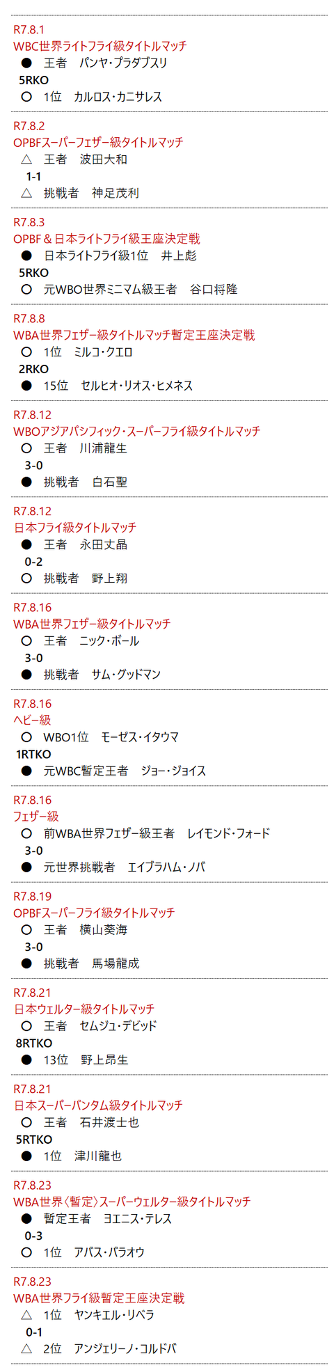 ◆2025年8月 主な試合結果